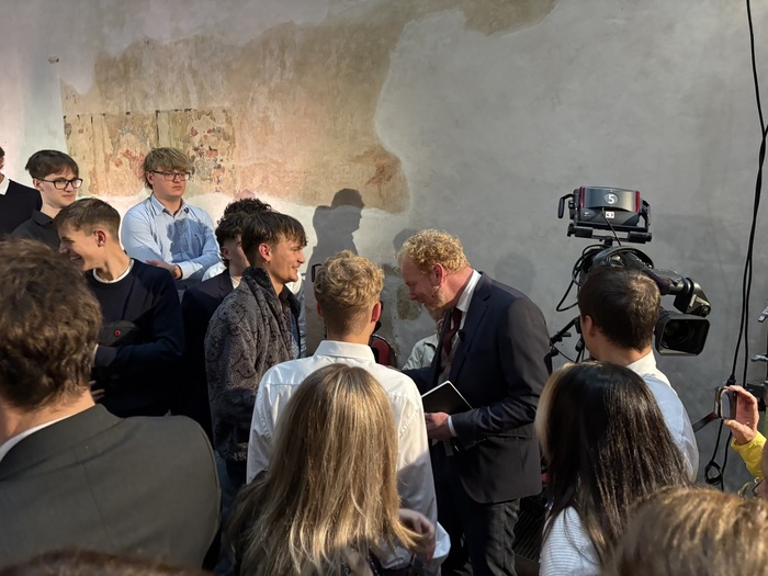 Dne 14.10. 2025 jsme s očekáváním usedli v sále Novoměstské radnice v Praze, abychom byli součástí diskuse V. Moravce s politology a ekonomy na téma Hranice demokracie. Čtyři vybraní žáci dokonce kladli hostům v přímém přenosu otázky.